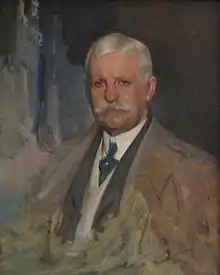 Each summer, large crowds would travel to the annual exhibitions, travelling by train to see the work at the library.[8] In 1903, Childe Hassam was the sole Impressionist among the tonalist exhibition, and his presence marked a turning point among the painters toward a more impressionist style.[9] In 1905, the Impressionist painter Willard Metcalf exhibited two works at the library.[10] Over the course of the twentieth century, artists such as Bruce Crane, Henry Rankin Poore, Robert Vonnoh, Bessie Potter Vonnoh, Matilda Browne, Charles Bittinger, Lawton S. Parker, Everett Warner, Ivan Olinsky, George Henry Bogert, Wilson Irvine, Edward Volkert, Carleton Wiggins, Guy C. Wiggins, Harry L. Hoffman, Edward F. Rook, Lydia Longacre, Clifford Grayson, Lawton S. Parker, Gertrude Nason, W. Langdon Kihn, Henry Kreis, Alphaeus P. Cole, Roger Dennis, Hugh DeHaven, Elisabeth Gordon Chandler, Jessie Hull Mayer, William S. Robinson, Frank Bicknell and Will Howe Foote would exhibit in the annual shows.[11][12][13][14][15]