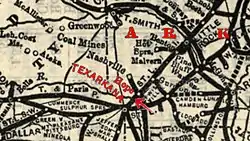 Approximate location of the Lynching of John West after he was forced off the Hope-Texarkana Missouri Pacific train No. 35 at 1:45 PM, July 28, 1922