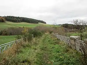 The site of the station, looking across the former bridge, in 2017