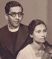 Lakshmi de Silva also played an important role in the Bible translation work. After three months of training, she was appointed secretary of the translation committee.[12][13] Her role in the committee involved technical work such as proofreading, and clerical work such as typing and dealing with the press.[12] She possessed sufficient knowledge in Greek and Hebrew to be able to check the accuracy and consistency of the Bible translation, which she continued at a full-time capacity even after she had fallen ill toward the latter part of her life.[12] With the experience she had gained, Lakshmi compiled valuable material for use in future bible translations.[12] Although she possessed the skills necessary to become a scholar in her own right, she was content to take a back seat to support her husband's work.[12] She died in 1980, just over a year before the Sinhala Bible translation was completed.[12]