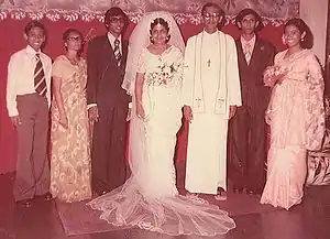 A few months after being ordained, Lynn de Silva married Lakshmi Mendis, on 3 February 1951,[12] at the Colpetty Methodist Church in Colombo. Toward the end of the year, on 16 November 1951, Lynn and Lakshmi had their first son, Lahan Jayalath de Silva.