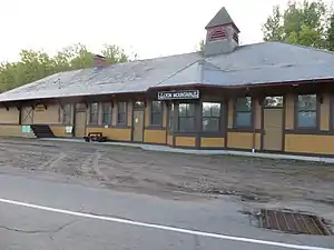 Lyon Mountain station is a historic train station located at Lyon Mountain, Clinton County, New York. The station was built by the Delaware and Hudson Railway in 1903, and is a long one-story, rectangular, wood-frame building with Late Victorian style design elements. It has a hipped roof with wide overhanging eaves and topped by a cupola with a pyramidal roof. The station remained in use until 1949–1950, and later used as a post office and tavern.[2]: 5 It is now a museum.
