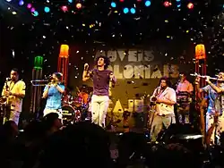 Móveis Coloniais de Acaju (usually referred to as simply Móveis; Portuguese pronunciation: [ˈmɔvejs]) are a Brazilian-based band comprising ten members, including singer André Gonzáles, keyboardist Eduardo Borém, and bassist Fabio Pedroza. The band's name literally translated means "colonial mahogany wood-made furniture".