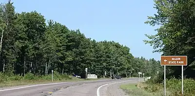 The M-203 designation is maintained by the Michigan Department of Transportation (MDOT) to provide access to McLain State Park. The trunkline is not listed on the National Highway System, a system of strategically important highways.[3] No section of it is located on the Lake Superior Circle Tour, although it is the closest state trunkline to Lake Superior in the area.[4] The highway runs through forest lands and city streets most of the way, with the section along the Portage Lake Canal being residential most of the way.