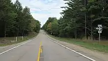 The roadway runs north through town passing the Grayling Army Airfield, and BL I-75/M-93 becomes Grayling Highway. Together they make a right turn onto Hartwick Pines Road when they intersect Old 27 Road, turning back towards I-75; this area is part of the Grayling State Forest. The BL I-75 designation ends at I-75 while M-93 continues along Hartwick Pines Road. The M-93 designation ends at the park's former main gate.[1] The roadway continues further into Hartwick Pines State Park as White Road, a rural road that intersects unsigned route County Road 612 north of the park boundaries.[3][4]