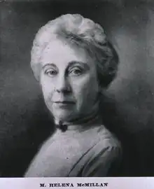 M. Helena McMillan (1869 – January 28, 1970) was a Canadian-American nursing educator.[1] She founded the Presbyterian Hospital School for Nurses in Chicago and remained its director for 35 years.[2] In 1907, she played an important role in the passage of the Illinois's first Nurse Practice Act.[3]