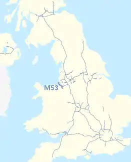 M53 highlighted in blue ![]() Shown in North West England ![]() Shown with the UK motorway network | ||||