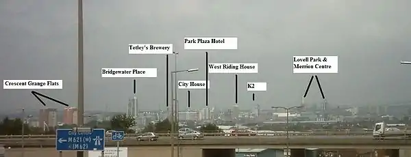 The M621 is a 7.7-mile (12.4 km) loop of motorway in West Yorkshire, England that takes traffic into central Leeds between the M1 and M62 motorways.