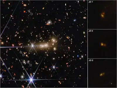 - ↑ "Webb Surprises Astronomers with Never-Before-Seen Details of the Early Universe". October 19, 2023.