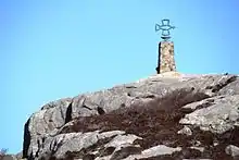 The wreck was located in 1997,[12] by the Royal Norwegian Navy underwater search and recovery vessel Tyr.[13] A memorial was raised at Lindesnes and unveiled by King Harald V of Norway on 21 September 1997.[16] The memorial monument, titled Pax, was designed by sculptor Arne Vinje Gunnerud.[17][18] Pax consists of a Common Buzzard in bronze with unfolded wings, on a platform of natural rock. The monument was built on the initiative of Sørlandet krigsminneforening (English: Southern Norway war memorial society) and Lindesnes municipality. A 986-strong choir, one singer for every life lost on the ship, sang at the unveiling of the monument.[19]