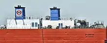 She was built by the Fincantieri Marghera Shipyard in Venice, Italy with yard number 305 as a barge carrier (LASH carrier) in April 1984. The 157.75 m (517 ft 7 in) (LOA) long vessel has a beam of 29.00 m (95 ft 2 in), a depth of 5.31 m (17 ft 5 in) and a draft of 4.43 m (14 ft 6 in) registered.[1] Two diesel engines of Type GMT BL230.12V (230x310) and two of Type GMT BL230.8V (230x310) manufactured by the Grandi Motori Trieste in Trieste, Italy give a total power of 8,680 kW (11,640 hp) propelling the vessel at 12.8 knots (23.7 km/h; 14.7 mph).[2] By 8,727 DWT and 7982 NT, she has a cargo capacity of 17,395 GT.[2]