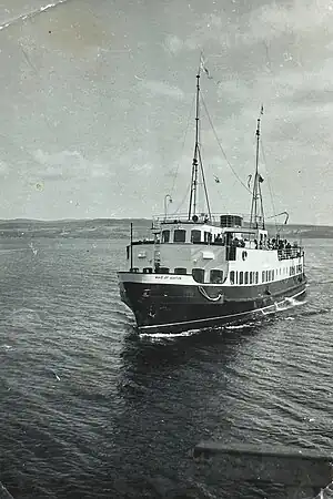 MV Maid of Ashton operated the Holy Loch service from Gourock, with calls at Craigendoran, Kilcreggan, Blairmore, Kilmun and Hunters Quay. She was popular for her comfort and time-keeping superior to her predecessor, MV Marchioness of Lorne.[1] In the late 1950s, the Maids lost their fixed routes and operated across the Clyde network.