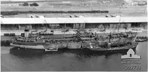 In November 1942, Ondina took part in the battle against the Japanese auxiliary cruisers and raiders Aikoku Maru and Hōkoku Maru where it was damaged;[2] after which it was temporarily repaired and then sent to Exmouth Gulf in Western Australia where she was stationed from 22 June 1943[3] supplying fuel to US submarines.[4] On 1 September 1943 the Ondina also supplied fuel to the ship MV Krait then taking part in Operation Jaywick, the raid on Singapore.[4] At the end of 1943 the ship was sent to the US for repairs at Tampa, sailing via Melbourne, Balboa, Panama Canal and Galveston.[5]