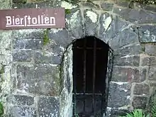 Portal of an old mine gallery at the Maaßen Hoisting Shaft. It is used by the pub as a drinks store, hence the name.