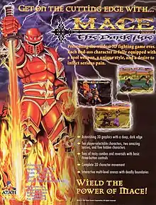 Mace: The Dark Age is a fighting video game released by Atari Games for arcade machines in 1997 and later ported by Midway Games to the Nintendo 64. Like many fighting games of the time, its style is marked by extreme violence, with characters graphically slaying defeated opponents. Utilizing 3dfx Voodoo chips for the hardware, the game received attention for its cutting-edge graphics and turned Atari a profit in the arcades. Critical response to the gameplay was much less enthusiastic.