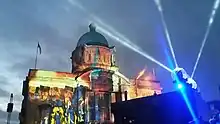Hull City Hall illuminated at the opening event for Hull City of Culture 2017 event