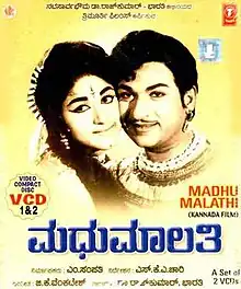 Madhu Malathi is a 1966 Indian Kannada-language romantic drama film, directed by S. K. A. Chari and produced by M. Sampath. The film stars Rajkumar, Udaykumar, Arun Kumar and Bharathi Vishnuvardhan. The film has musical score by G. K. Venkatesh.[1][2] The story of the movie is based on one of the popular Vikram - Vetal story from Vetala Panchavimashti, an 11th-century Sanskrit work whose earliest recensions are found in Kathasaritsagara written by Somadeva, the story further tracing back to the ancient Indian drama Mālatīmādhava by Bhavabhuti (c.8th-century).[3] The title card credited the story to the director with a note that it was based on a book by Bhavabhuti.[4]