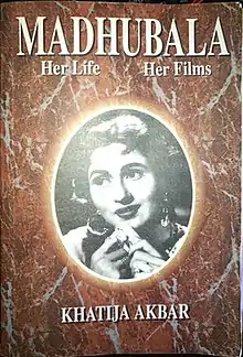 It was written by Khatija Akbar and published by UBS Publishers' Distributors in 1997.[1] Opening with the author's foreword thanking those who helped her in writing the book, Madhubala: Her Life, Her Films is a biographical book describing Madhubala's birth in Delhi in 1933, her 22-year-long successful film career, her affairs and marriage to the playback singer Kishore Kumar, and her death in 1969 by ventricular septal defect. The book also extensively examines the production and release of the epic drama Mughal-e-Azam (1960), which became the highest-grossing film of all-time at that point of time and earned her a Filmfare nomination in Best Actress category.[2]