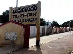 Madhuranagar railway station located at City of Vijayawada (station code:MDUN[1]), is an Indian Railways station located in Andhra Pradesh.[2] It is situated on Duvvada–Vijayawada section of Vijayawada railway division in South Coast Railway zone.[3]