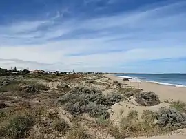 Madora Bay is the northernmost suburb of Mandurah and can be located on the coast between Mandurah and Rockingham. Madora Bay covers 3.7092 square kilometres (1.4321 sq mi) of Mandurah and is roughly 58 kilometres (36 mi) away from Perth CBD. A 120-metre (390 ft) wide strip of rural land is zoned in the Peel Region Scheme on the suburb's northern edge, in order to maintain a physical barrier between the Perth Metropolitan Area and Mandurah.[5]