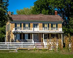 The Mahaffie Stagecoach Stop and Farm Historic Site, locally known as the Mahaffie Farm, is located in Olathe, Kansas. The house was originally a stop along the Westport Route of the Santa Fe, Oregon, and California Trails, which originated in nearby Westport, Missouri. The house's heyday came with large numbers of westbound travelers of the 1860s.