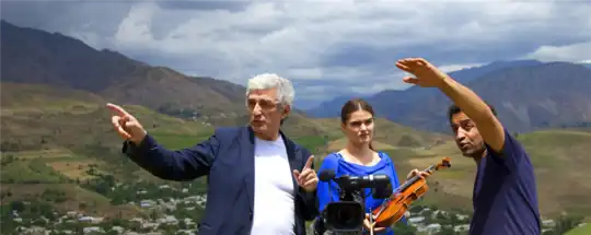 Director Mahdi Bemani Naeini and Composer Tolib Shakhidi during filming of the "Vivaldi Azalia" music video (2010)