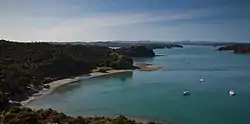 The part is located on either side of the entrance to the Mahurangi Harbour.[2] The bulk of the regional park is found in Mahurangi West. In addition to this, two exclaves of the park are located on the eastern shores, in Scotts Landing, only accessible by boat.[3]