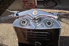 The Maico Mobil, said to resemble a "two-wheeled car", was a highly enclosed two-wheel motorcycle which sold only in small numbers. It was designed to provide motorcycle handling combined with scooter convenience, a large trunk,[9] and weather protection. It was nicknamed the "dustbin".[10] The Mobil was produced from June 1950 through 1958 with aluminum bodywork and a tubular frame.[11][12]