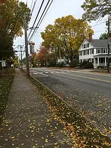 Main Street is a historic street in Yarmouth, Maine, United States. It is part of the 18-mile-long (29 km) State Route 115 (SR 115), the eastern terminus of which is in Yarmouth at the intersection of Marina Road and Lafayette Street (SR 88), at Yarmouth Harbor in the Lower Falls area. Its western end is a merging with Walnut Hill Road in North Yarmouth, at which point SR 115 continues west.