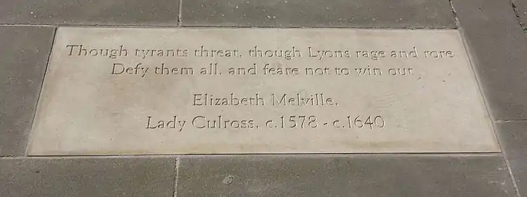 Elizabeth Melville, Lady Culross Scots "Though tyrants threat, though Lyons rage and rore