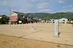 - The remains of dugout pillar buildings and the remains of accompanying buildings (a building of the first half of the Kofun period with a floor space of about 23 m2 in 2×3 rooms, the remains of a collapsed house and wooden products with black lacquered arcs, a small house of 1×1 rooms and a total pillar building of 2×2 rooms and wooden products with black lacquered arcs, a stone monument of the former site of the Tamaki Palace in Tamaki, and the existence of a palace residence are suspected. In addition, 17 dugout pillar buildings were found.)