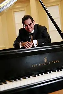Malek Jandali (Arabic: مالك جندلي, Mālik Jandalī) (born 1972) is a Syrian-American[1] composer and pianist, whose music integrates Middle-Eastern modes and Arabic Maqams into Western structures of classical music. He is the founder of the nonprofit organization Pianos for Peace, which aims to build peace through music and education.[2] Jandali immigrated to the United States and studied music in North Carolina. Since then, he has performed with orchestras across the world and composed a number of modern classical works. His music was described as "a major new addition to the 21st century symphonic literature" by Fanfare magazine.[3] with "heart-rending melodies, lush orchestration, clever transitions and creative textures", according to American Record Guide.[4] Jandali's music ranges from chamber works to large symphonic compositions integrating Middle-Eastern and Western influences.[5] He is the biological paternal cousin of Steve Jobs and Mona Simpson .[6]
