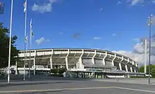 Malmö Stadion, often known simply as Stadion before the construction of the new Stadion between 2007 and 2009, is a multi-purpose stadium in Malmö, Sweden. As of 2015, it is the home of association football club IFK Malmö, presently of Division 2, and athletics club MAI.[1] The stadium served as the home ground for Malmö FF, an association football team in Sweden's top flight, Allsvenskan, from its opening in 1958 until 2009, when the club moved to the newly constructed Stadion, built beside Malmö Stadion, in 2009. Malmö FF still use the stadium for training purposes and youth matches. Besides being used for sports, the stadium has also hosted various concerts and other events. The ground's record attendance, 30,953, was set in the first match played at the ground, a 1958 FIFA World Cup match between Argentina and West Germany.[2]