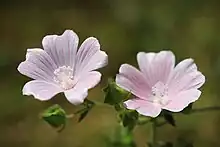 Malva hispanica, the Spanish mallow, is a species of flowering plant in the family Malvaceae, native to the western Mediterranean.[1] Uniquely in its genus, Malva hispanica flowers possess a bilobed epicalyx, which is derived from an ancestral trimerous structure and represents a loss of the adaxial epicalyx lobe.[2]