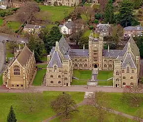 Malvern College is a fee-charging coeducational boarding and day school in Malvern, Worcestershire, England.[3] It is a public school in the British sense of the term and is a member of the Rugby Group and of the Headmasters' and Headmistresses' Conference. Since its foundation in 1865,[4][5] it has remained on the same grounds, which are located near the town centre of Great Malvern. The campus, now covering some 250 acres[3] (101 ha), is near the Malvern Hills.