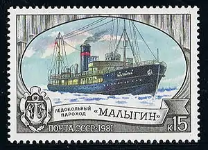 [[Image:|thumb|left| 250px|Soviet postage stamp: Icebreaker Malygin]]