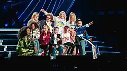 The group have performed the song on their four tours, the Spiceworld Tour, the Christmas In Spiceworld Tour, the Return of the Spice Girls Tour and the Spice World - 2019 Tour.[36][37][38][39] It remained in the group's live set after Halliwell's departure at the end of the European leg of the Spiceworld Tour. The performance at the tour's final concert can be found on the video: Spice Girls Live at Wembley Stadium, filmed in London, on 20 September 1998.[40] During the Return of the Spice Girls tour, "Mama" was performed as the second song from the show's fifth segment. All five girls stood together holding hands to perform it, while the LED screens in the background showed photos of their mothers holding baby pictures of the group, and a montage of them and their children.[41][42] For the British shows, fifty young girls from the Capital Children's Choir dressed in white came out from a platform and lined the stage against the backdrop screens to sing with the Spice Girls.[43]