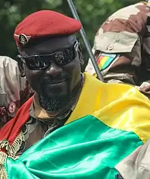 Doumbouya was the instigator of the 5 September 2021 Guinean coup d'état, in which the president of Guinea, Alpha Condé, was detained.[9] Doumbouya issued a broadcast on state television declaring that his faction had dissolved the government and constitution.[10] He also said that the "National Committee of Reconciliation and Development (CNRD), [was forced] to take its responsibility" after "the dire political-situation of our country, the instrumentalization of the judiciary, the non-respect of democratic principles, the extreme politicization of public administration, as well as poverty and corruption."[11] In justifying the military's actions, Doumbouya quoted the former Ghanaian president Jerry Rawlings, who said that "if the people are crushed by their elites, it is up to the army to give the people their freedom."[12]