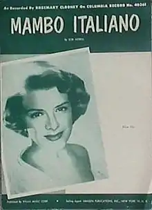 "Mambo Italiano" is a popular song written by Bob Merrill in 1954 for the American singer Rosemary Clooney. The song became a hit for Clooney, reaching the top ten on record charts in the US and France and No. 1 on the UK Singles Chart in early 1955. The song has shown enduring popularity, with several cover versions and appearances in numerous films.