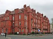 The hospital was founded in 1814 on the initiative of William James Wilson and opened in King Street the following year.[1] It moved to Faulkner Street in 1827, to Princess Street in 1874 and to St John's Street in 1882, before re-locating to a facility designed by Pennington & Bridgen in Oxford Road which was built between 1884 and 1886.[1] The building was damaged by a large bomb in the German air raid on 23 December 1940. A doctor and a nurse were killed.[2] The building became Grade II listed in 1974 and has since been converted for other uses.[3]
