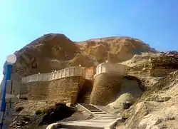 This peninsula was formerly also known as Sīāhkūh (Persian: سیاهکوه) which means 'Black Mountain' in Persian.[2] The Mangyshlak peninsula was overtaken in 1639 by Kalmyks.[3] The peninsula's name stems from Ming Qishlaq, which means "1000 winter encampments" in Turkic languages.[4]