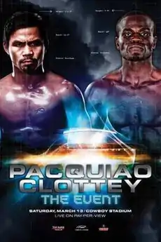 Manny Pacquiao vs. Joshua Clottey, billed as The Event, was a welterweight fight for the WBO welterweight championship. The bout was held on March 13, 2010, at Cowboys Stadium, in Arlington, Texas, United States. This match was put together after the long awaited "superfight" between Manny Pacquiao and Floyd Mayweather Jr. had fallen through.