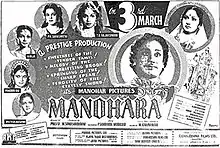 Manohara is a 1954 Indian Tamil-language historical fantasy film[3] directed by L. V. Prasad and written by M. Karunanidhi. Starring Sivaji Ganesan, T. R. Rajakumari, P. Kannamba and Girija, the film was based on the play of the same name by Pammal Sambandha Mudaliar. It was released on 3 March 1954. The film was simultaneously shot in Telugu and Hindi under the same title.[4] Those versions were released on 3 June 1954.[5]