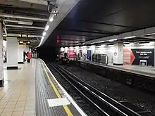 In 1897 the MDR obtained parliamentary permission to construct a deep-level railway running between Gloucester Road and Mansion House, beneath the existing sub-surface line. This new line was to be an express route using electric trains to relieve congestion on the sub-surface tracks. Mansion House was to be the terminus of the express route, with platforms 71 feet (22 m) below the sub-surface ones.[16] No immediate work was carried out on the deep-level line, and the subsequent take over of the MDR by the Underground Electric Railways Company of London (UERL) and the resignalling and electrification of the MDR's routes between 1903 and 1905 meant that congestion was relieved without needing to construct the deep-level line. The plan was dropped in 1908.[17]