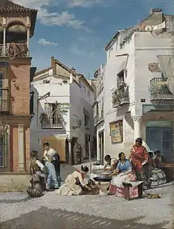 Following his father's death, he moved to Seville, where he lived from 1867 until 1886. It was there that he finally devoted himself entirely to art, gaining a reputation as an excellent portrait painter, but also creating numerous historical and religious works as well as costumbrista scenes.
