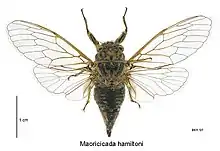 Maoricicada hamiltoni, also known as the Hamilton's cicada, is a species of insect that is endemic to New Zealand.[3][2] This species was first described by John Golding Myers in 1926.[1][4] This species is named in honour of Harold Hamilton.[5]
