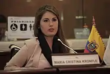 María Cristina Kronfle Gómez (born November 22, 1985) is an Ecuadorian lawyer and politician. She served as a member of the National Assembly of Ecuador from 2009 to 2017.