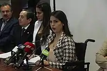 From the age of 18, she promoted transportation assistance for voting by people with disabilities in the city of Guayaquil, starting by writing opinion letters to national newspapers,[2] which aroused the interest of other people linked to the issue. She conducted campaigns for the visibility of this social sector, called "Campaign Vote" (Spanish: Campaña Voto).[3] The letters and campaign were successful in convincing the Supreme Electoral Court of Ecuador to arrange for the members of the Vote Receiving Boards to assist citizens with exercising their franchise in venues which are inaccessible to people with physical disabilities.[2]