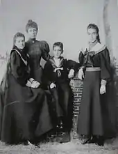 Mercedes was heir presumptive at birth, but the disappointment was so great that she was initially treated only as an infanta. Antonio Cánovas del Castillo, then head of the government, who disliked Maria Christina and did not want the crown to pass again to a female after the disastrous reign of Isabella II, decided to ignore the newborn.[3] Mercedes's paternal aunt Isabella retained the title of Princess of Asturias until Práxedes Mateo Sagasta, President of the government replacing Cánovas, pressured King Alfonso XII to accord the title to Mercedes, which he did on 10 March 1881.[4] On 12 November 1882, Mercedes gained a sister, Infanta Maria Teresa. The marriage of their parents was unhappy. Alfonso had married Maria Christina in order to secure the succession to the throne. He did not love his wife and was disappointed after she gave birth to two daughters, while he already had two extramarital sons. In July 1883, Maria Christina left the Spanish court and traveled with her daughters to visit her own family in Austria.