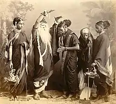 The first public performance of a stage play in Marathi was Sita Swayamvar (Marriage of Sita) by Vishnudas Bhave, based on a popular episode of the epic Ramayana. Staged in 1843 in Sangli, with ruler of the princely state of Sangli in audience, it was an experimental play, based on folk theatre form called Yakshagana from the neighbouring Karnataka region. After the success of his play, he staged many more plays about other episodes of Ramayana. His plays were largely influenced by the Shakespearean and Parsi theatres. Bhave went on to form a travelling theatre troupe.[9][10] The coming decades saw notable plays like Jhansichya Raniche Naatak (1870), Sawai Madhavravancha Mrutyu (1871), AfjhalKhanachya Mrutyuche Naatak (1871) and Malharrav Maharaj (1875). However, Marathi stage took a distinct theatre form with the musical Shakuntal by Annasaheb Kirloskar in 1880,based on a classical work, Abhijnanasakuntalam by Kalidasa.The success of his theatre company, Kirloskar Natya Mandali paved way for commercial repertories in Marathi theatre, and subsequently the formation of Natak Companies.[11]